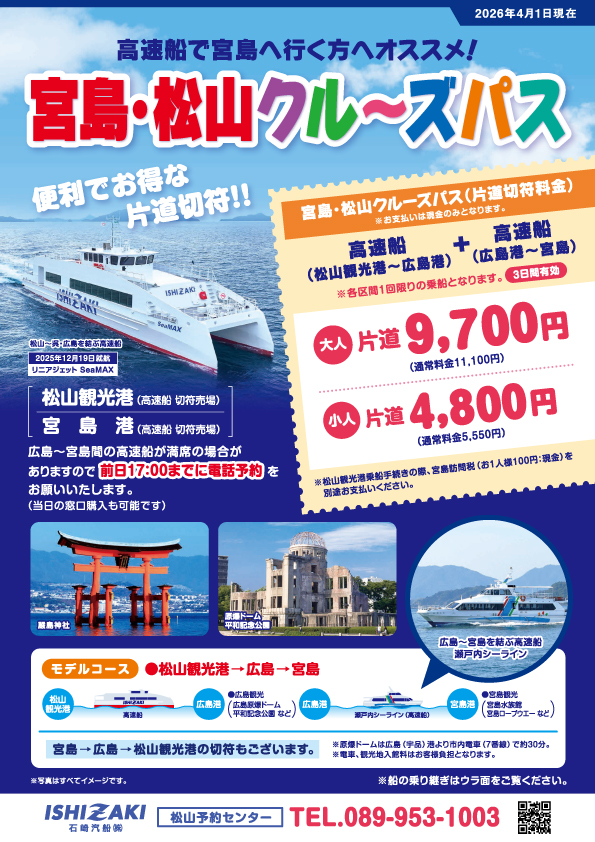 松山〜広島「高速船」+広島~宮島「高速船」のセットがお得に!